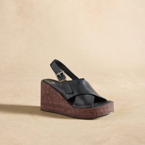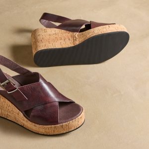 These handcrafted wedges feature a criss-cross upper with buckle. cork-wrapped outsole and rubber sole. Leather. Imported. Exclusive. Whole sizes 36 (US 5). 37 (US 6). 38 (US 7). 39 (US 8). 40 (US 9). 41 (US 10). 3.5 heel