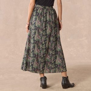 So flowing and breathable. our printed gauze silhouette skirt with an asymmetrical front ruffle detail and novelty slit at the princess seam is as comfortable as it is beautiful. Side zipper. printed self-lining. Cotton. Machine wash. Imported. Exclusive. Sizes XXS (00). XS (0–2). S (4–6). M (8–10). L (12–14). XL (16–18). Approx. 35l.
