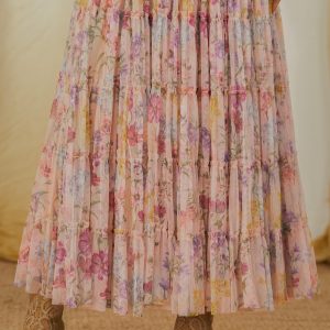 This tiered. printed mesh maxi dress is simply stunning. with ruffled mesh detail at the bodice. Sleeveless with back zip and fully lined. it has a beautiful drape and swing. Polyester. Dry clean. Imported. Sizes XS (0?C2). S (4?C6). M (8?C10). L (12?C14). XL (16?C18). Approx. 57.5l.