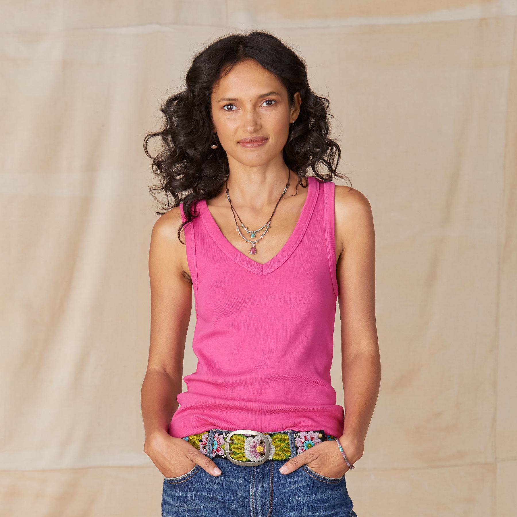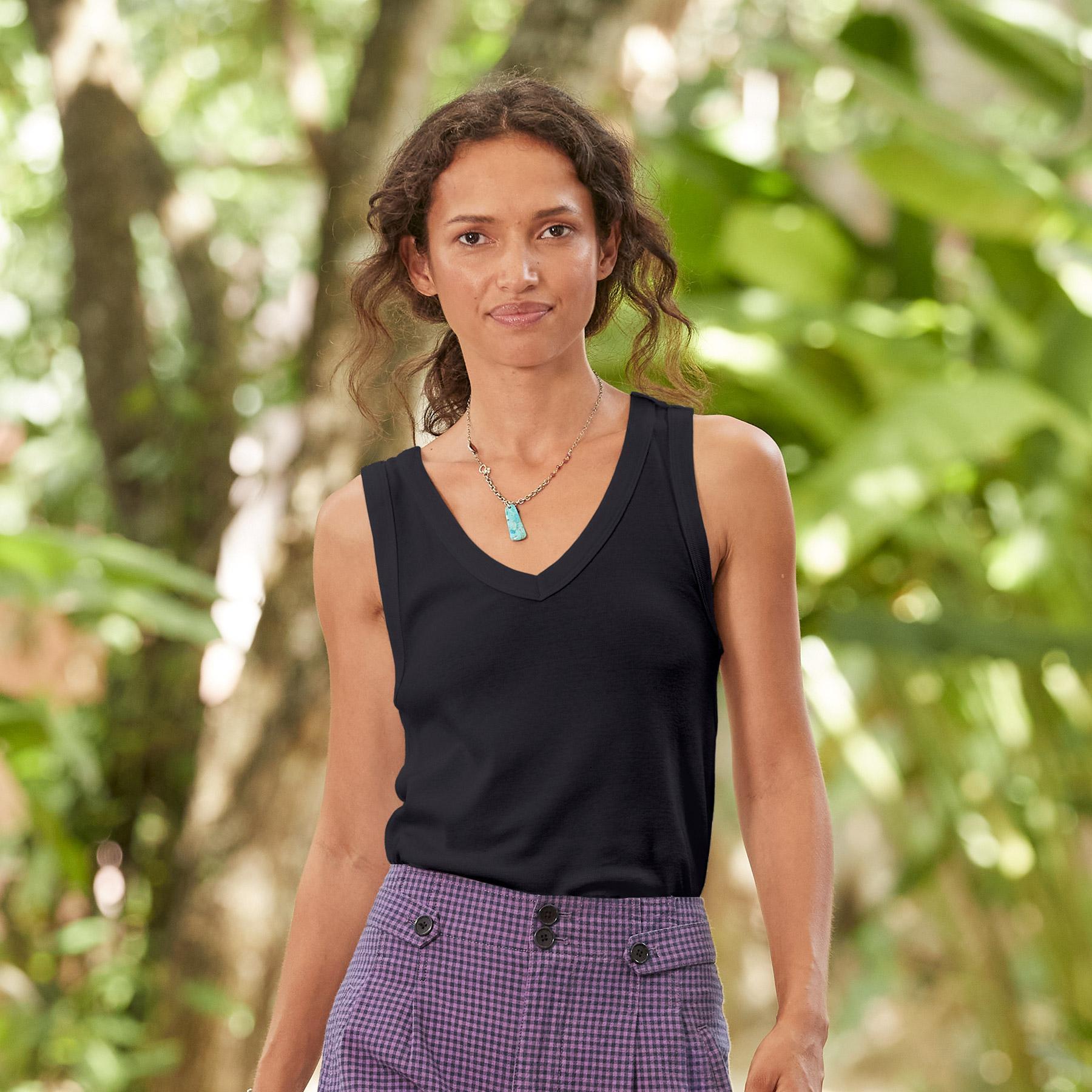 Layered or on its own. you’ll be wearing this soft rib v-neck on repeat. We suggest sizing up for a loose look. Cotton. Machine wash. Imported. XS (0-2). S (4-6). M (8-10). L (12-14). XL (16-18). XXL (20-22). Approx. 24.25l.
