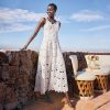 An essential piece to take you from season to season. our Sonda Shirt Dress pairs perfectly with whatever the weather demands: sandals. sneakers. booties or even leggings and boots. Feminine eyelet cutout details throughout. shell buttons. shirttail hem and back box pleat. Separate slip. Cotton. Hand wash. Imported. Exclusive. Sizes XXS (00). XS (0–2). S (4–6). M (8–10). L (12–14). XL (16–18). Approx. 33.5l.